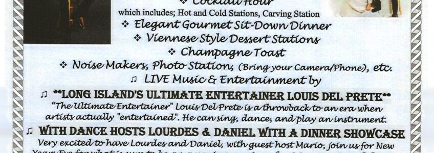 Celebrate and Ring in 2026 with CLASS AND STYLE at the Constantino Brumidi Lodge’s New Year’s Eve Gala – Wednesday, December 31, 2025 ~ 8:00PM – 1:00AM $145.00/pp